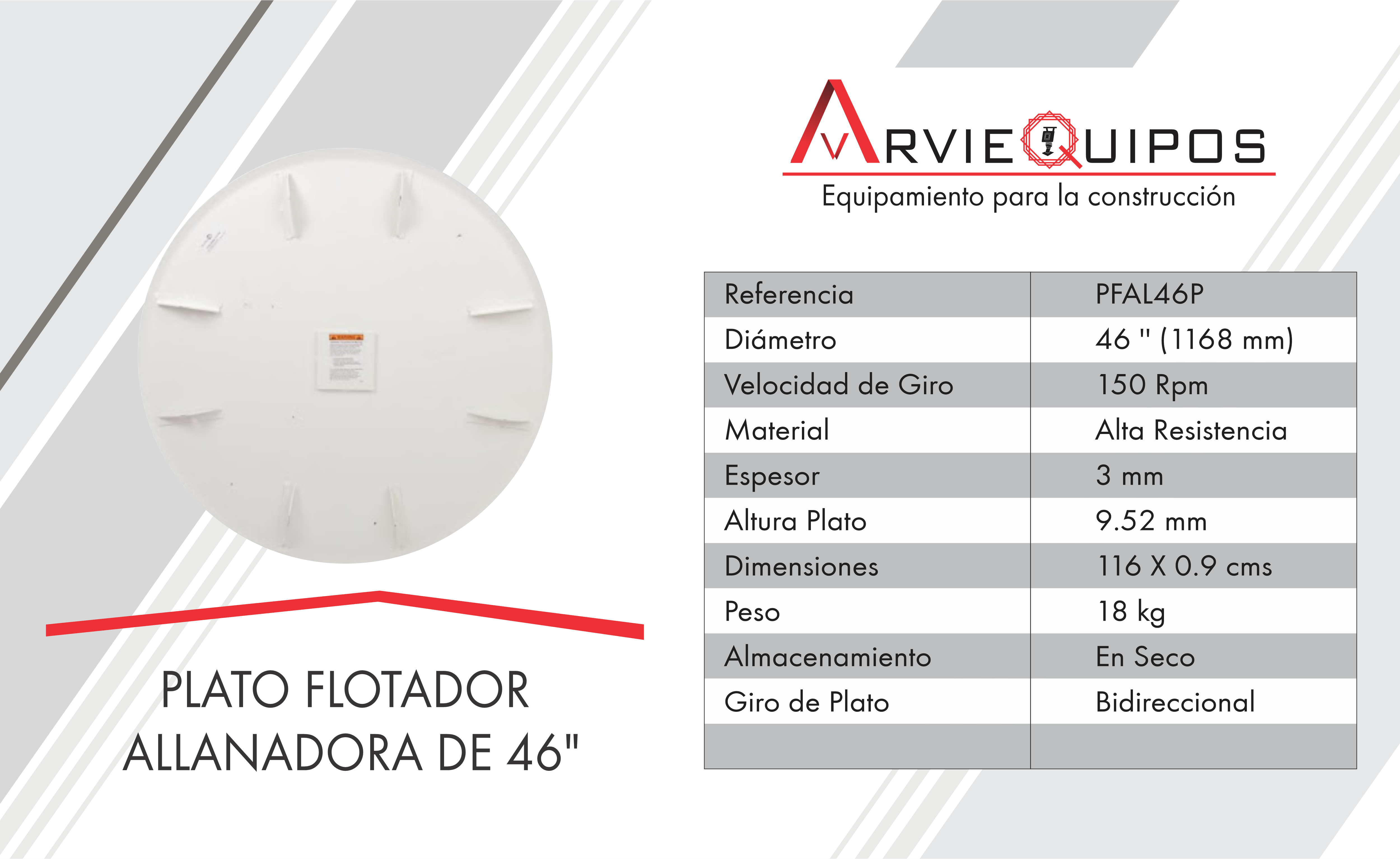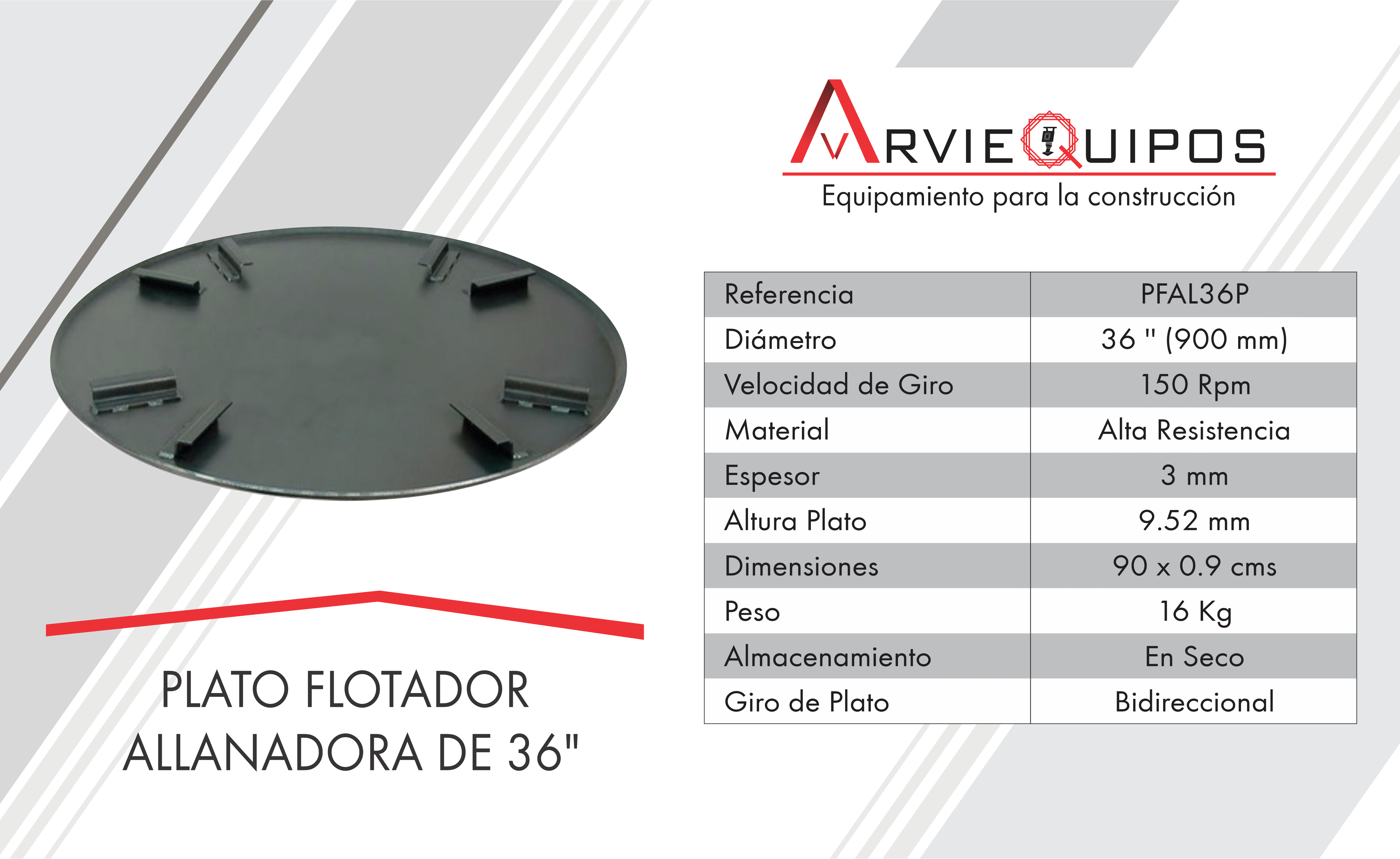 Discos fabricados en material resistente (lamina pre templada) para soportar las torsiones y hormigones abrasivos. Flotación consiste en distribuir la capa superficial para permitir el curado elimina las imperfecciones como hondonadas y protuberancias.